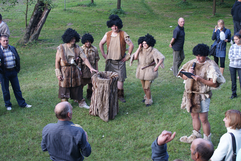 Uczestnicy przebrani w stroje jaskiniowców zostaną przewiezieni samochodzikami FLINSTONÓW w epokę kamienia łupanego. Tam, w prehistorycznej scenerii czekać będzie na przybyszów mnóstwo zabaw i śmiesznych konkurencji, które poprowadzi wielki FRED, a towarzyszyć mu będzie Wilma, wraz z ich nieodłącznymi przyjaciółmi. Wyśmienita zabawa, niesamowita przygoda, a wszystko to uwiecznione na pamiątkowych zdjęciach. Któż nie chciałby mieć zdjęcia z prawdziwym JASKINIOWCEM…?